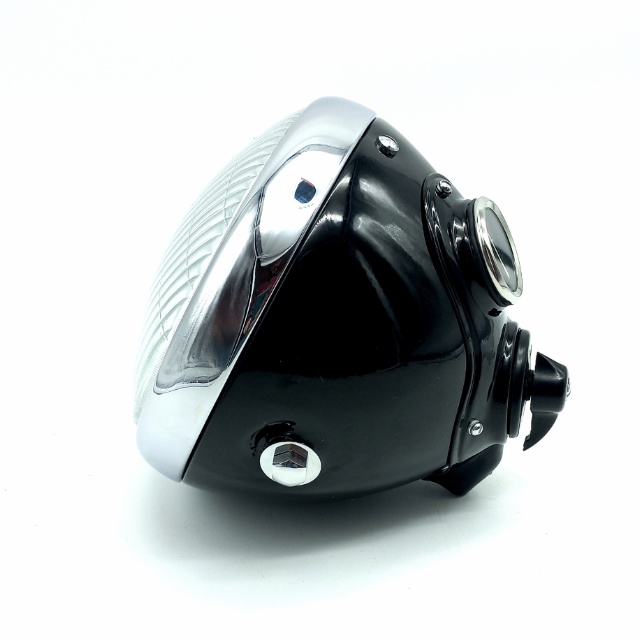 Faro 7" replica Lucas SSU700, completo di pannello con interruttore e amperometro, BSA, Norton, AJS e Matchless