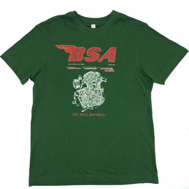 Maglietta BSA A65 Lightning, Thunderbolt e Spitfire, verde, taglia M, (lunghezza 70cm - larghezza 51cm)